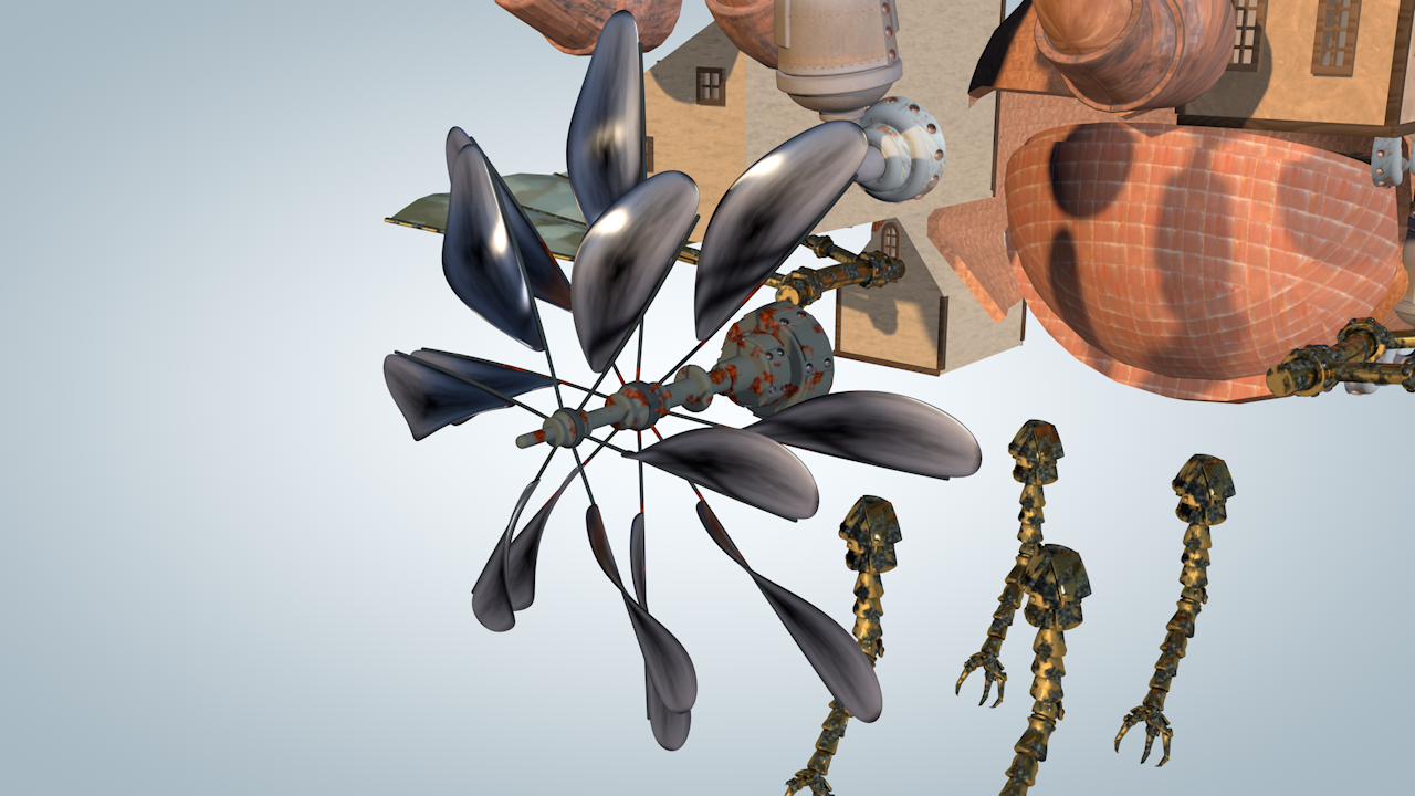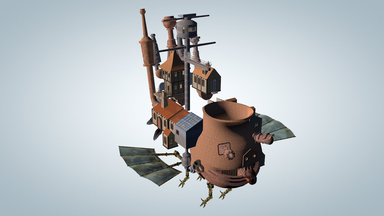 This is (going to be – still a WIP!) a model of the flying castle from the anime movie ‘Howl’s Moving Castle’. I used this model to practice my modeling and texturing.